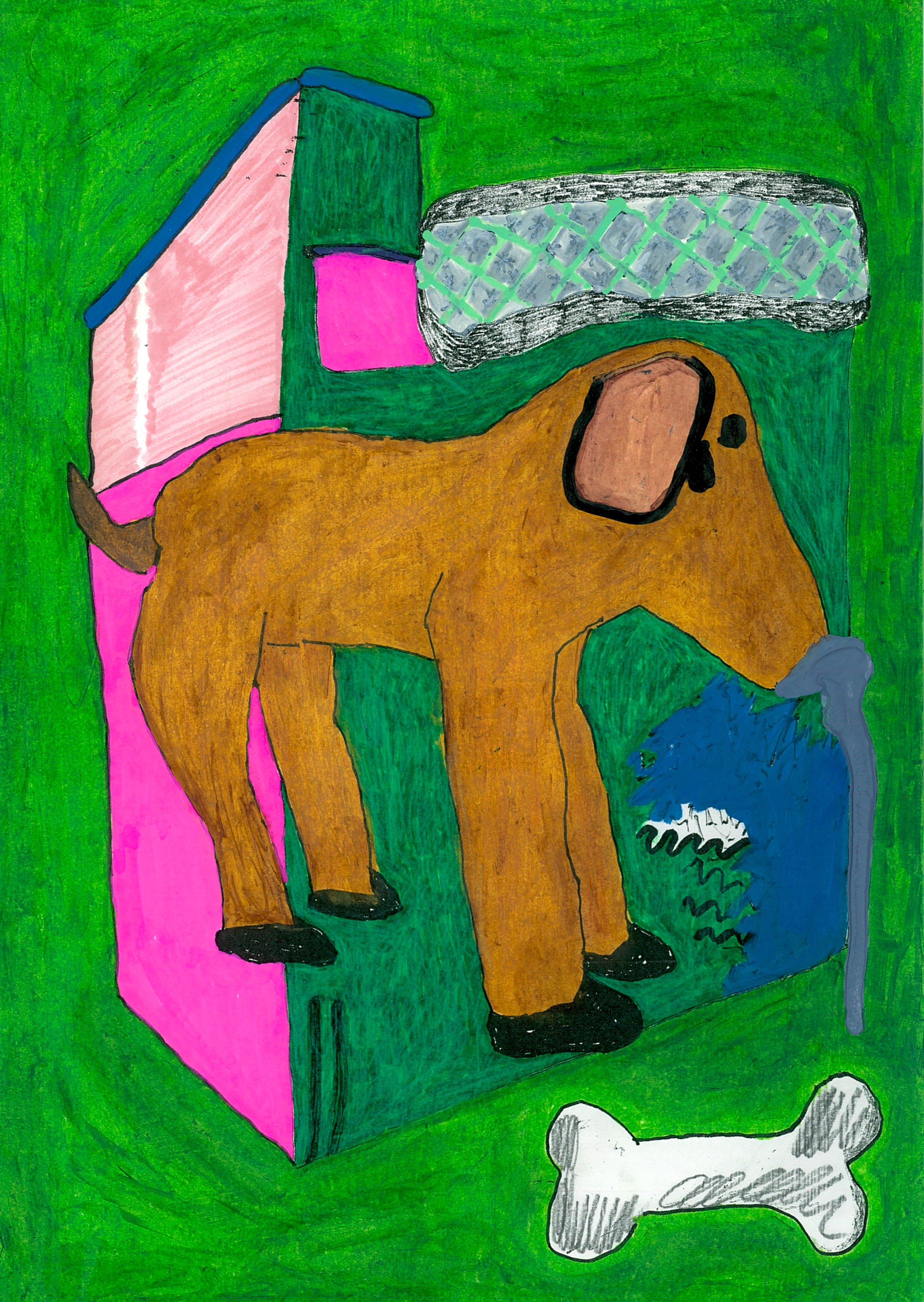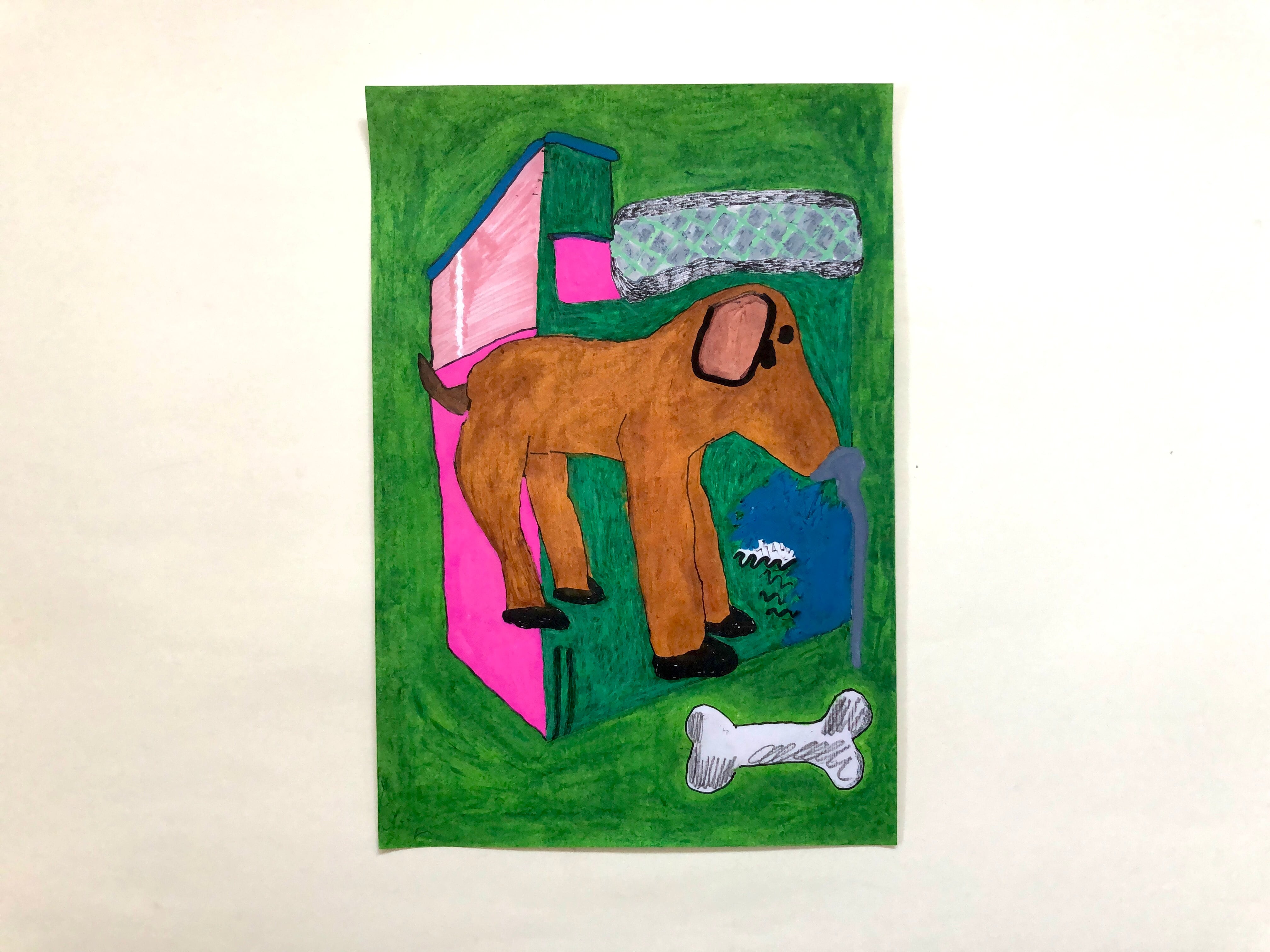 hut、犬、骨。