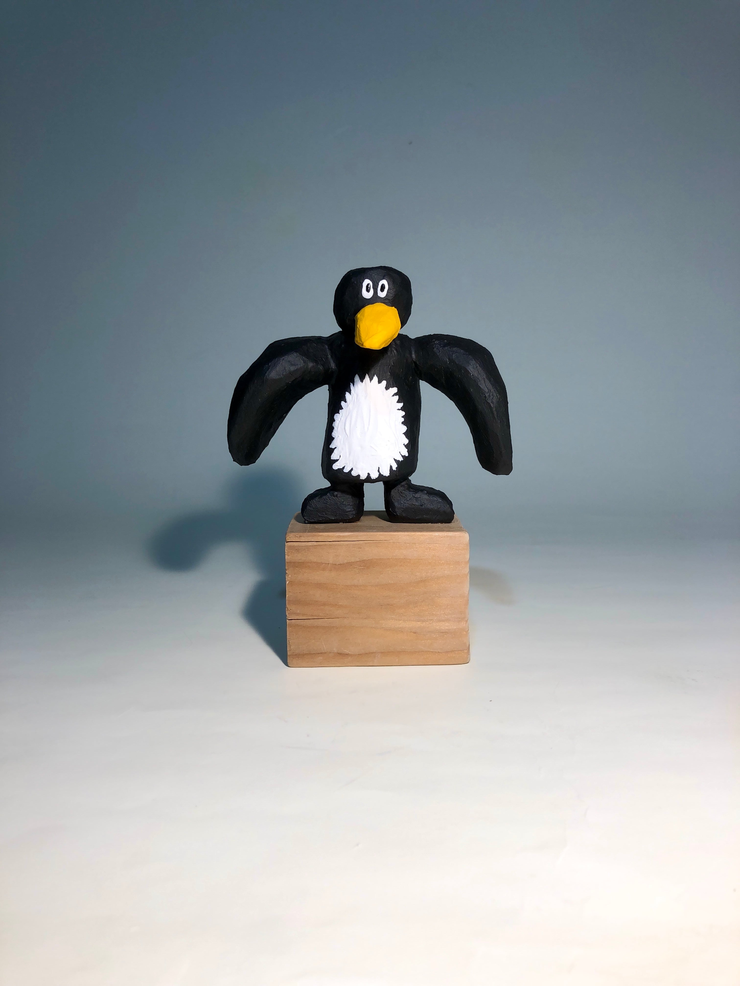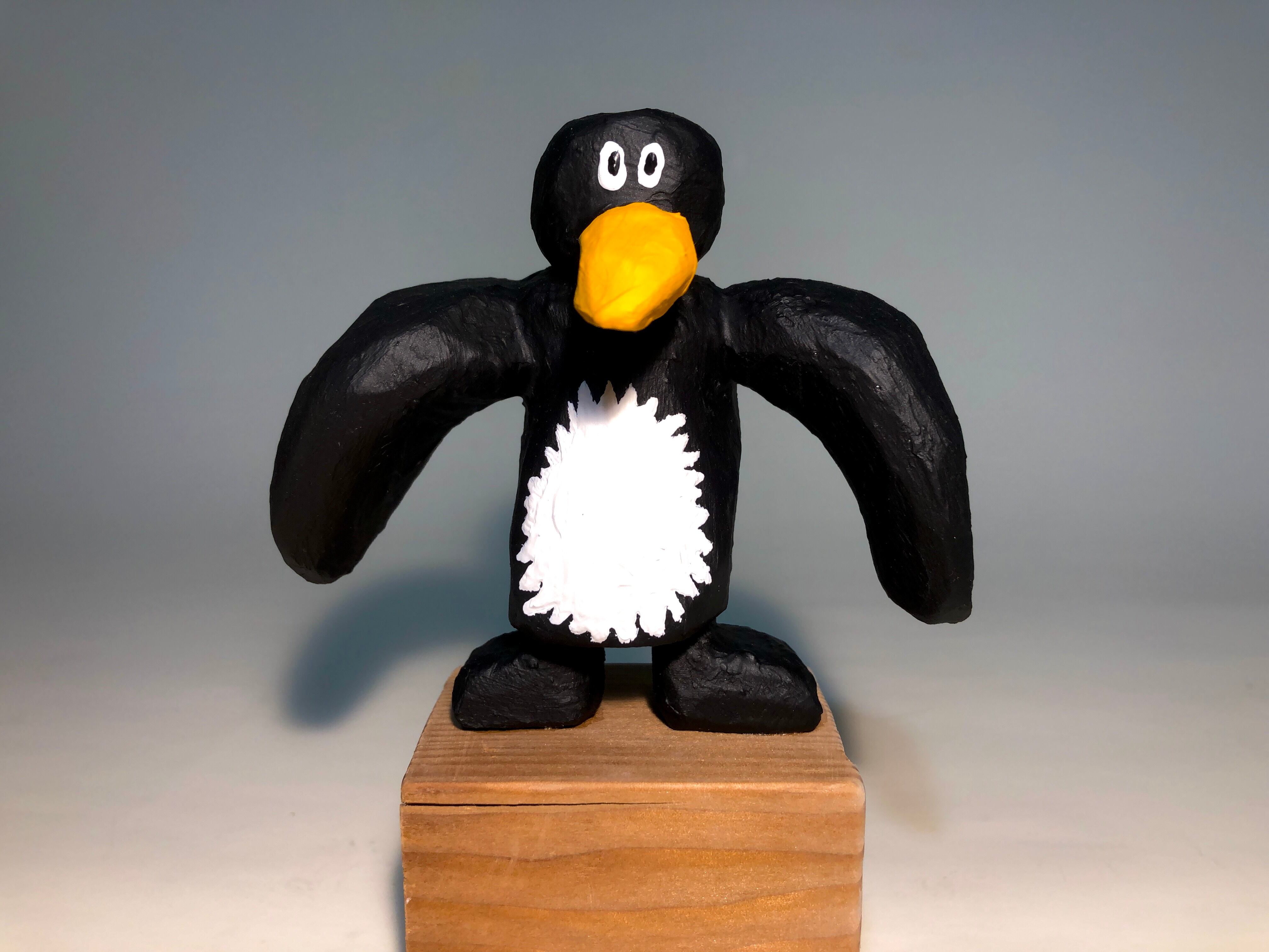 この彫刻のペンギンは少々大袈裟に広げすぎている感も否めないけれど、本人は意気揚々です。